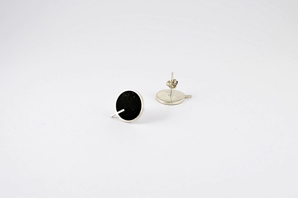 Estos aros minimalistas están construidos con hilos y láminas de plata 925, soldados entre sí.